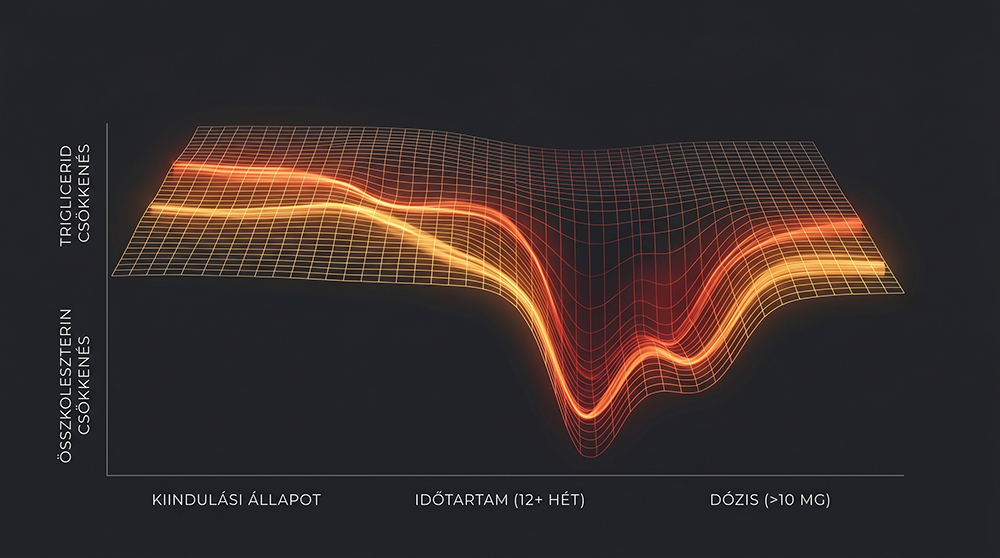 Ha ezt a három mechanizmust együtt nézzük, érthetővé válik, miért éppen a triglicerideken és az összkoleszterinen a legerősebb a hatás – ezekre hatnak a leginkább a fenti folyamatok.